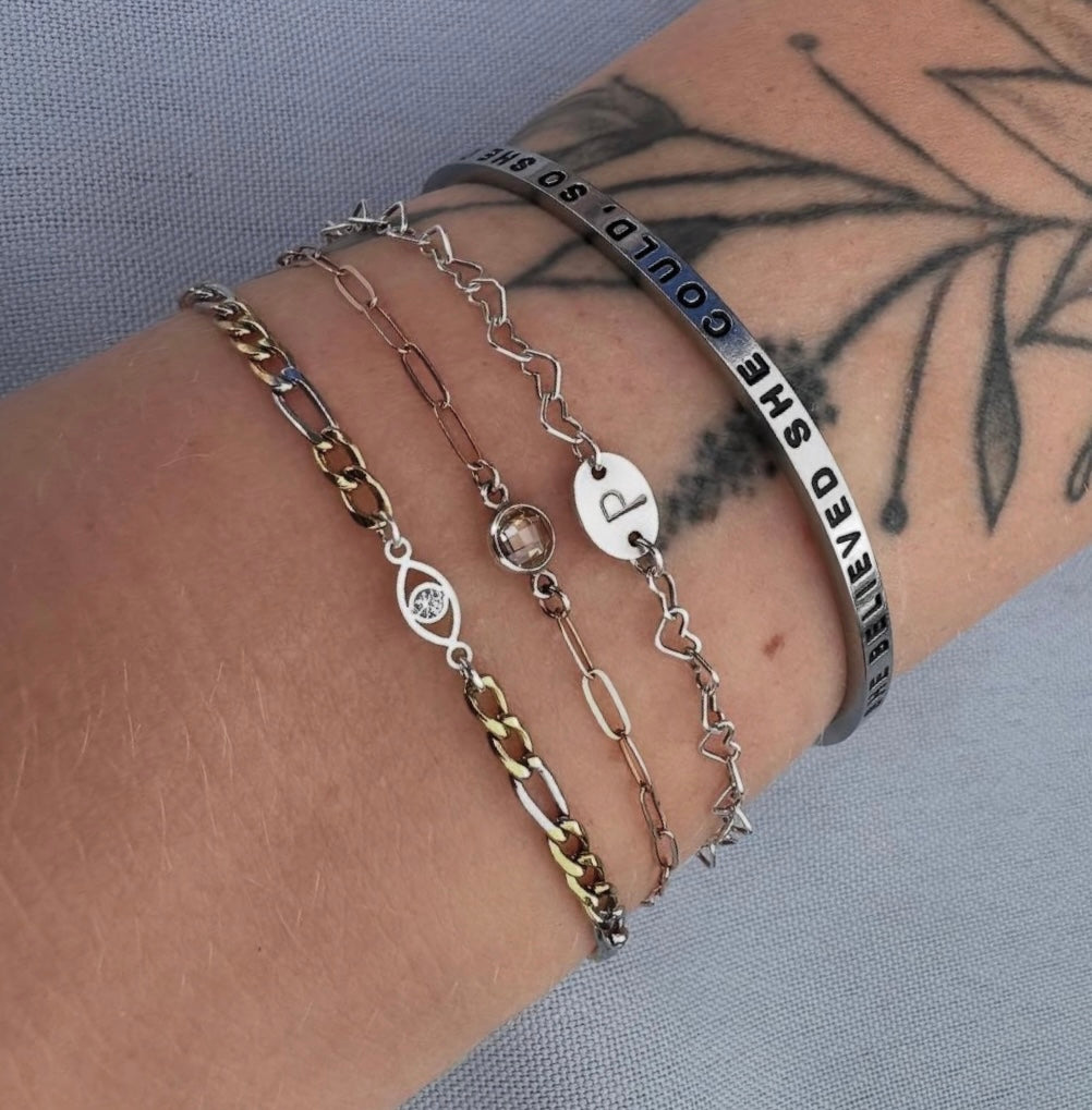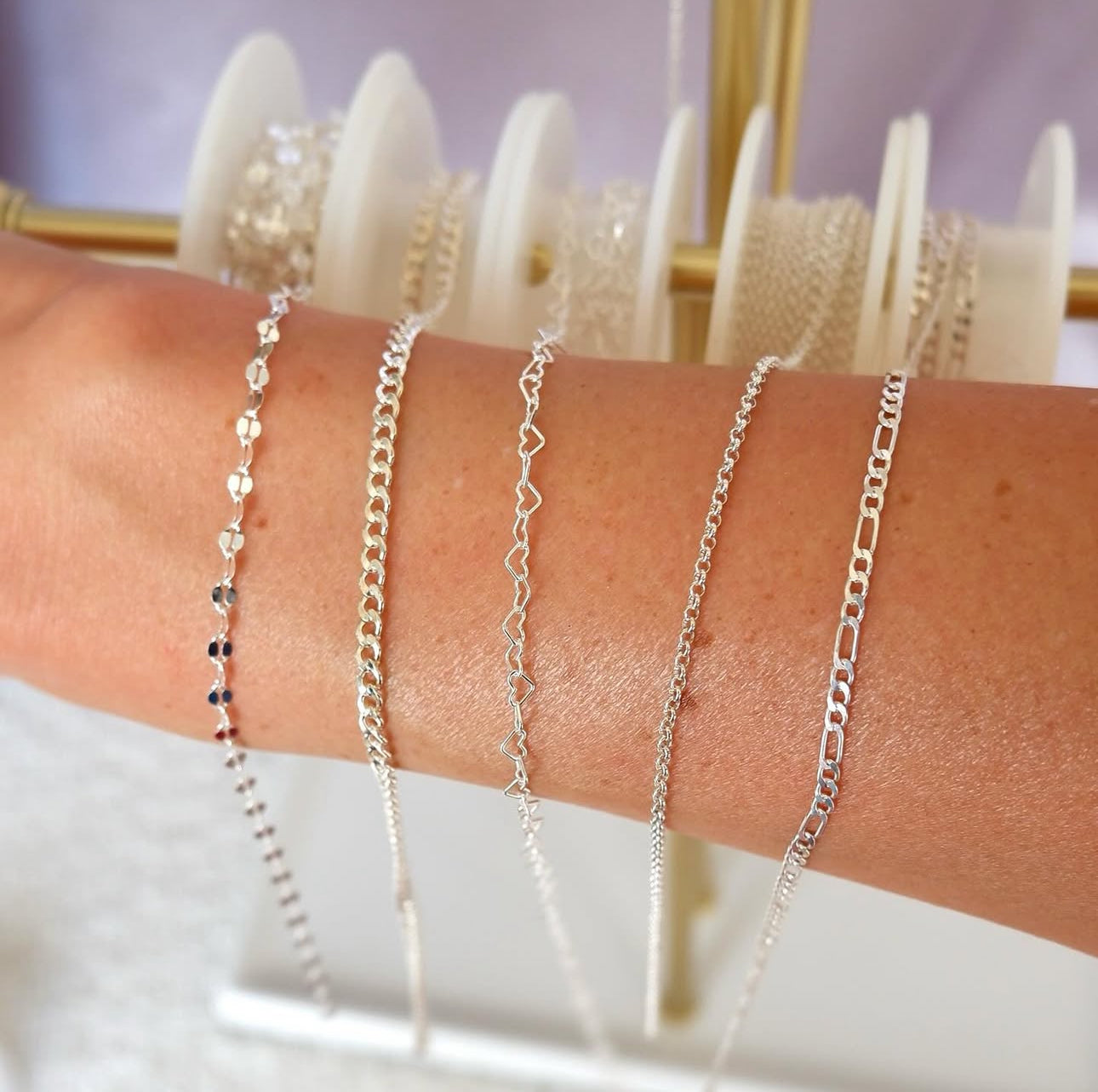 stainless steel, rose gold-filled, and sterling silver permanent bracelets
