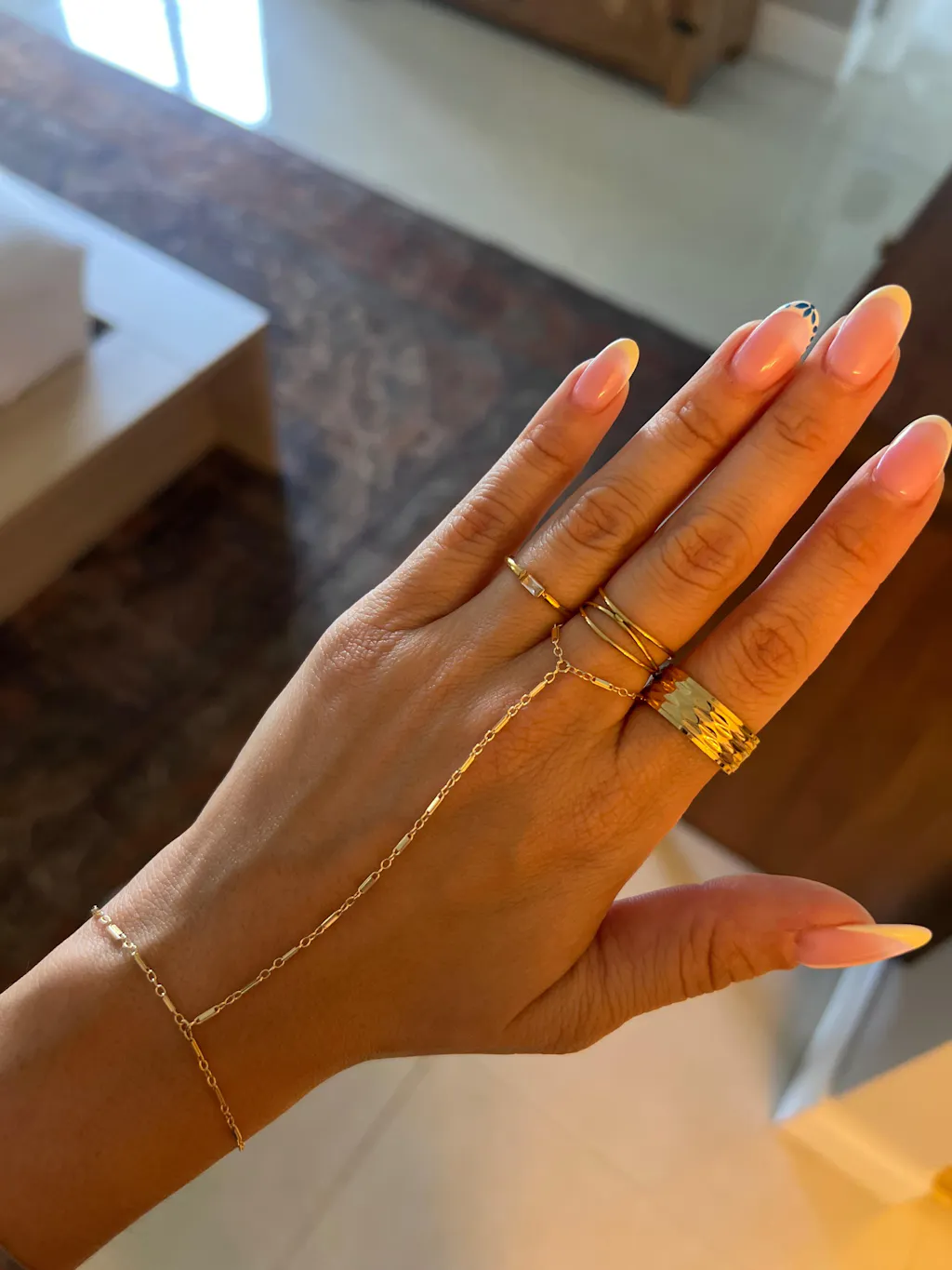 This hand chain is perfect in every way! I got the mixed metal satellite hand chain (#3) and it’s stunning. The silver beads on the gold chain look so pretty and sparkle.